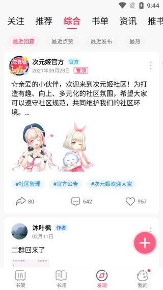 也就是社区板块,可以根据其他用户的推荐进行阅读或是分享交流自己的阅读心得体验。