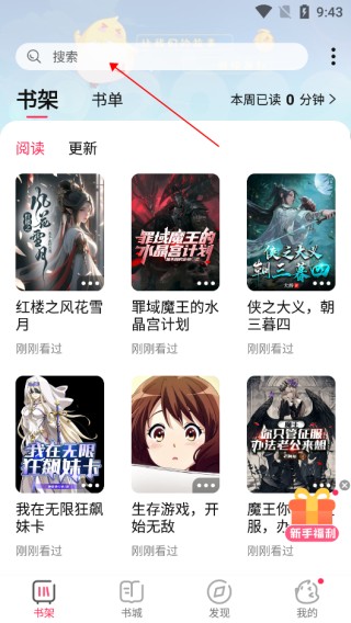 2、可通过书名/作者/简介/书架进行搜索,也会有热门佳作推荐。