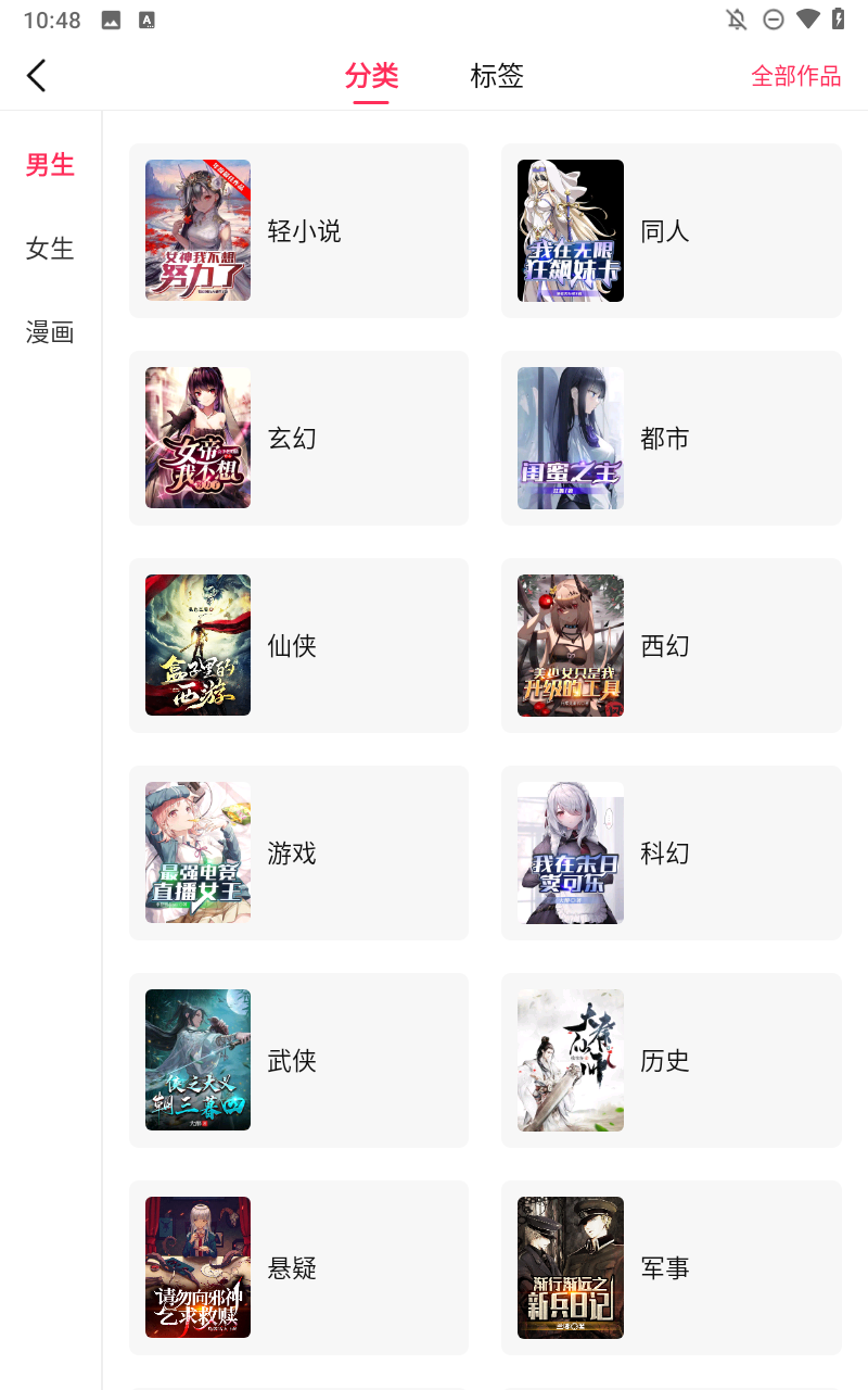 4、二次元小说、战争小说、长篇小说、短篇小说、总有一款适合你。