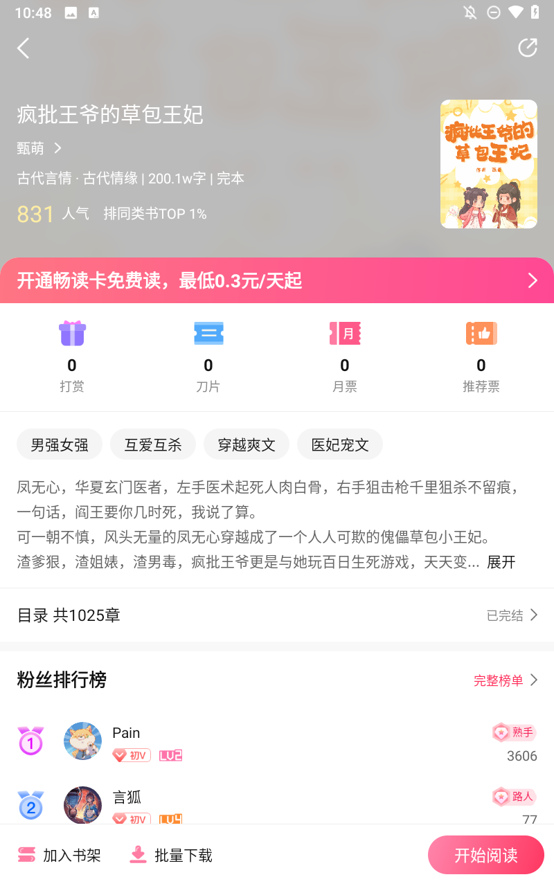 3、进入想要阅读的小说,点击开始阅读。