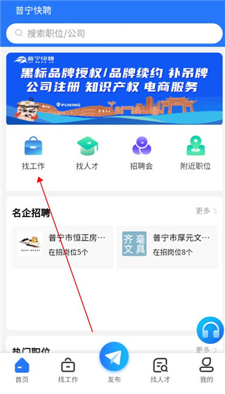 2、在首页中点击找工作