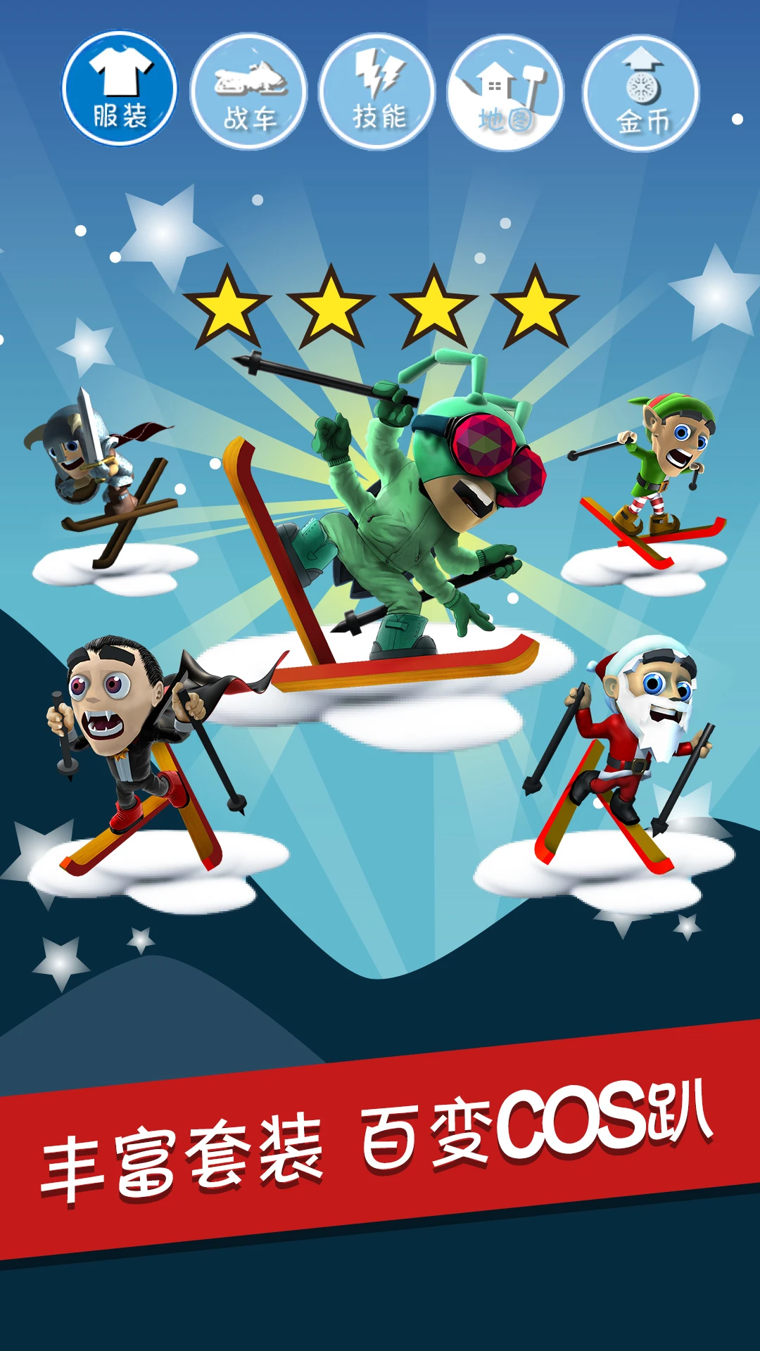 滑雪大冒险,这是一款热门经典好玩的动作跑酷手游。游戏以雪崩为背景,进入游戏,玩家需要操控角色开启滑雪大逃亡。游戏提供了丰富的地图、装备道具以及精品套装,玩家可以换上具有酷炫技能的套装,并使用各种装备,比如战车、腾云摩托等载具,助力玩家加速躲避障碍,在惊险的雪崩逃亡中获取高分!