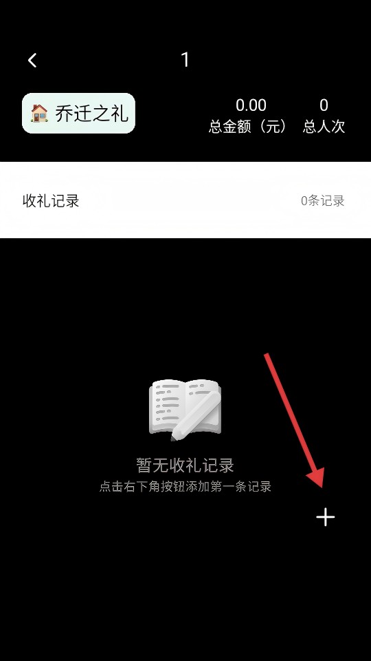 3、在收礼记录页面,点击右下角的【+】,开始添加收礼记录。