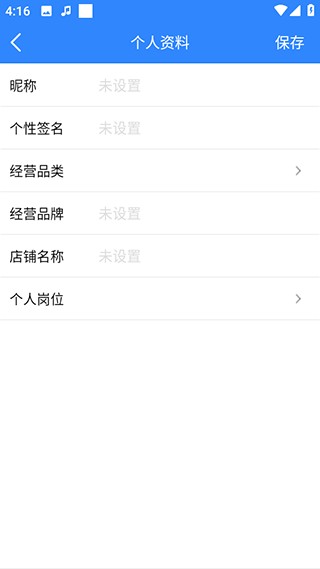3、填写昵称和店铺名称等个人资料;