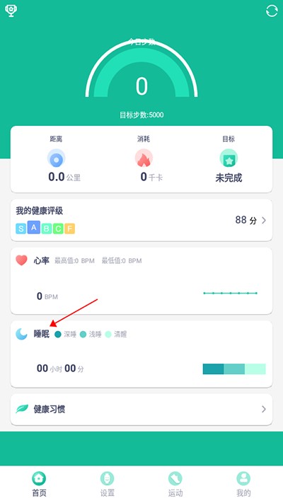 1、在FitPro的首页,找到睡眠选项,点击进入页面