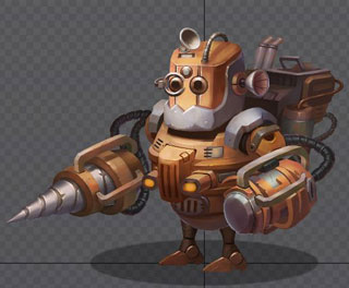 来路不明,未来世界最基础款的厨房助理机器人,右手搅拌馅料,左手按压面饼,身后背着废料再生燃料箱。