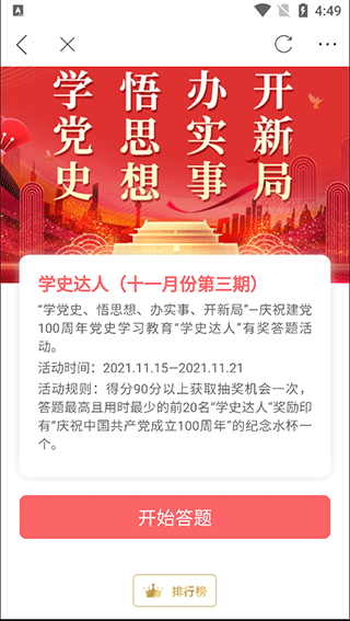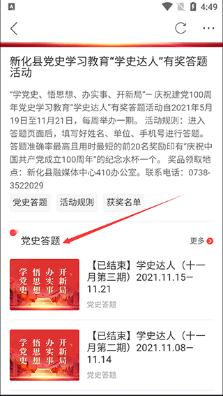 2、进入后你就能看到“新化县党史学习教育有奖答题获得”,下滑可以查看历史答题期数;