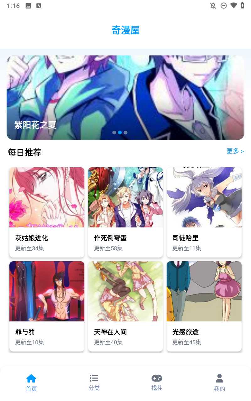 1、下载好软件之后打开app,并默认进入首页,在这里找到你想要阅读的漫画。
