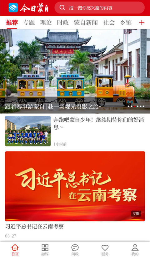 《今日蒙自》是一款专门为蒙自居民们所打造的集新闻+政务+服务于一体的一站式应用平台。通过这款软件,蒙自当地居民们可以不出门就知天下事,了解各种时下最新的新闻资讯以及各种官媒报道。同时,还可以方便快捷高效地办理政务业务,不需要到线下去办理,只需要在软件上点击申请即可,极大地节省了居民们的时间,优化了业务办理流程。另外,软件还设置有官方反馈渠道,居民们可以点击反馈页面,将自己的建议或者想法提交到官方。