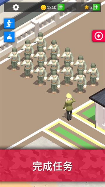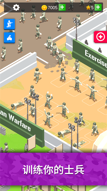 《闲置要塞》(Idle Army Base)是一款超级好玩有趣休闲的模拟经营类游戏。游戏中,玩家们将化身为商业大亨,根据要求创建一个完美的军事基地,基地需要拥有各种不同的基本设施,分别担任不同的职能,比如食堂、训练设施、宿舍等等。玩家们需要不断通过经营赚取钱财,训练出能力强、素质好的士兵们,并且不断扩大和完善设施的建设,还可以进行各种设施的升级。游戏玩法简单,操作轻松好上手,十分适合闲暇时间游玩。