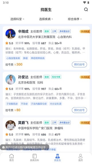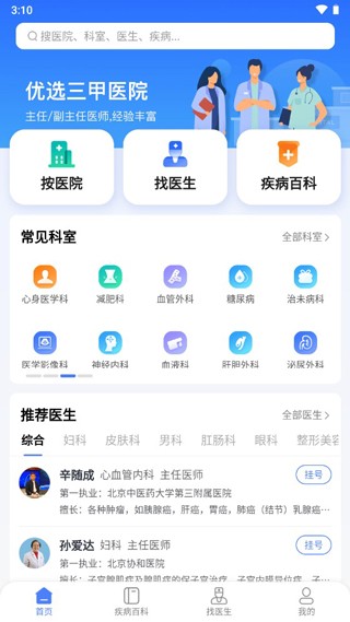 1、严选推荐各科室优秀专家医生。