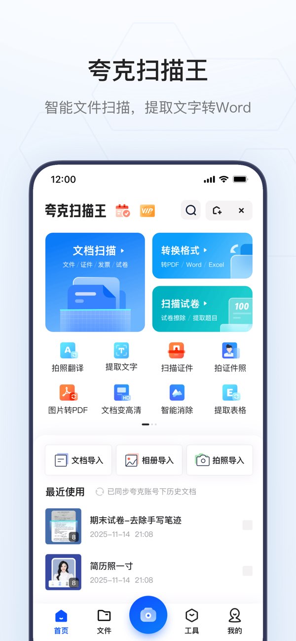 夸克扫描王:拍照识别文字与表格,自动提取、整理、总结。
