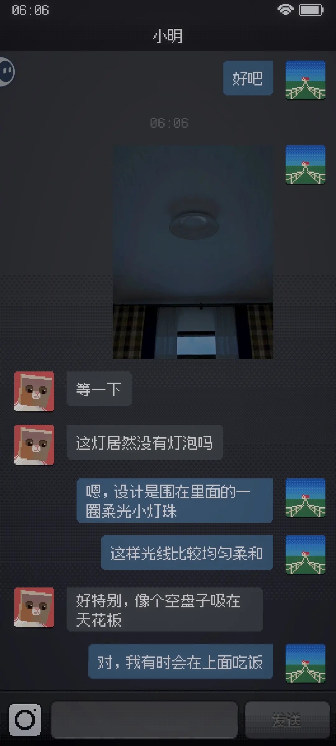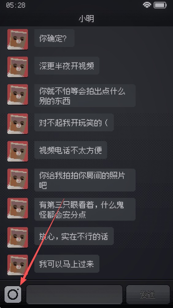 点击左下角拍摄房间内照片发给小明