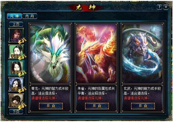 在蜀山中,每位散仙在60级后便可以拥有一个元神,玩家可在青龙、朱雀、玄武三种元神中选择一种