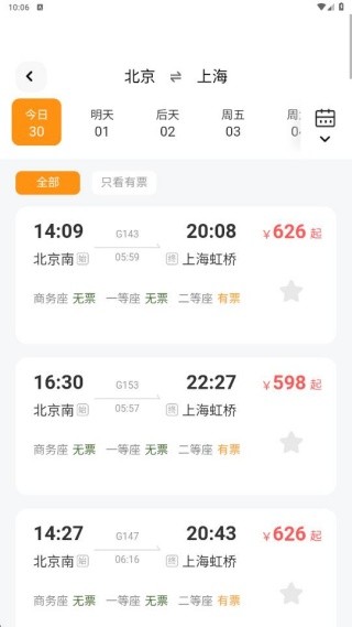 4、当天的车票信息以及车次都会给大家详细的展示;