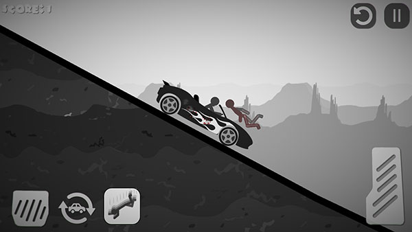 2、本关挑战的是驾驶汽车来撞击火柴人。左下角为刹车,右下角为油门。