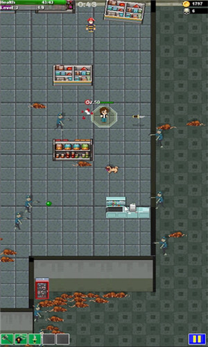4、进入游戏以后,玩家需要消灭周围的僵尸,滑动屏幕可以控制角色的移动,注意不要被僵尸黏上,不然的话会持续掉血;