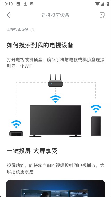 3、注意这里需要确保手机与电视在同一网络下,耐心等待搜索匹配即可