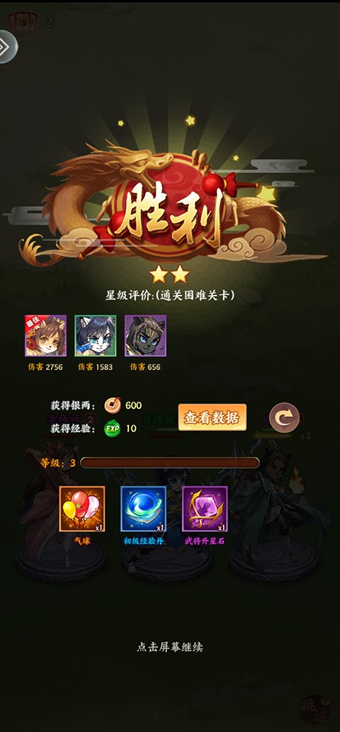 8、游戏采用回合制自动攻击,当回合数达到一定阶段时,可点击右下角跳过加快战斗节奏。