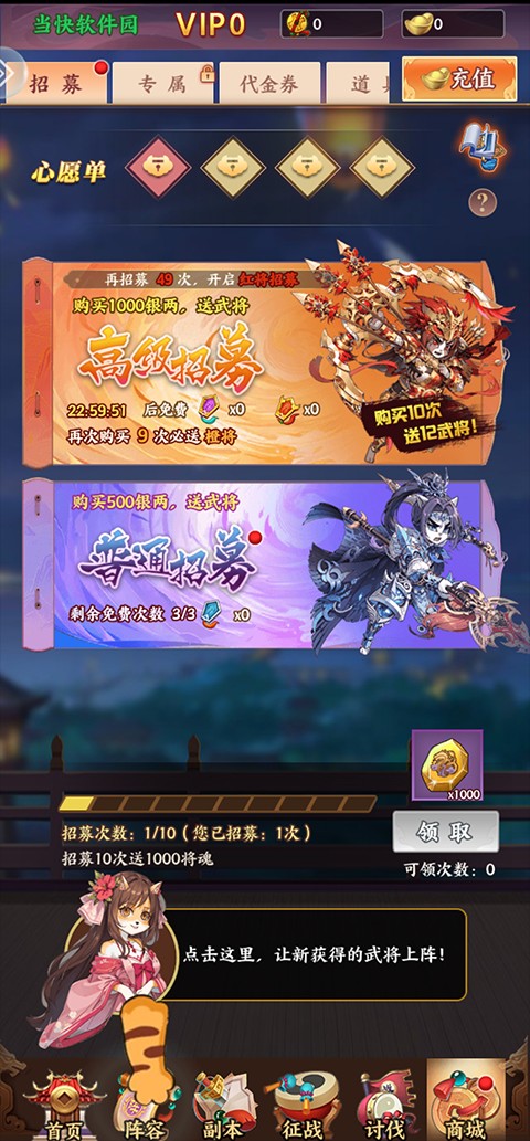 3、在主界面下方点击商城,即可进入角色招募界面。