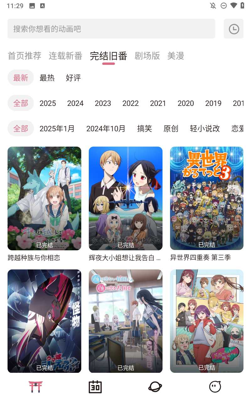 稀饭动漫app官方版是一款专为动漫爱好者打造的免费追番软件,平台汇集了全网热门的动漫作品,当季新番基本都会准时更新,并贴心提供清晰的更新排期表,方便用户提前了解播出时间,不错过任何一集精彩内容。稀饭动漫app官方版全程无广告干扰,观看过程更加专注流畅,让追番体验回归纯粹。软件支持高清流畅的在线播放,并提供离线下载功能,即使在没有网络的情况下,也能随时观看已缓存的动漫内容。