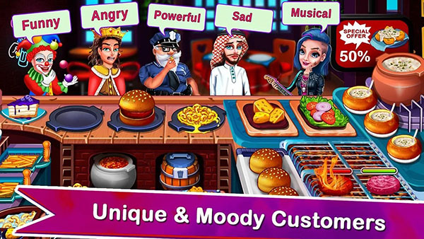 3、提供具有特色的烹饪Craze餐厅游戏角色阵容。