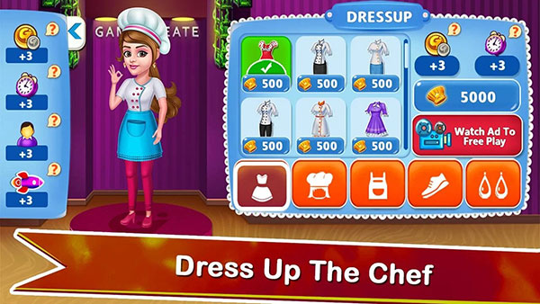 4、装扮烹饪明星厨师游戏,为烹饪巨星带来好处。