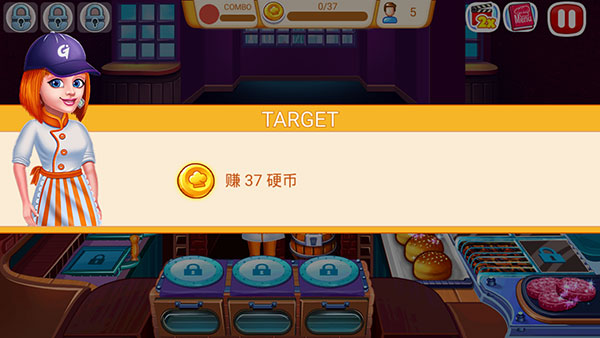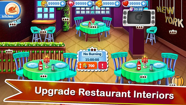 5、在订购游戏中升级食物,厨具,室内和名人厨师的着装,以快速通过关卡。