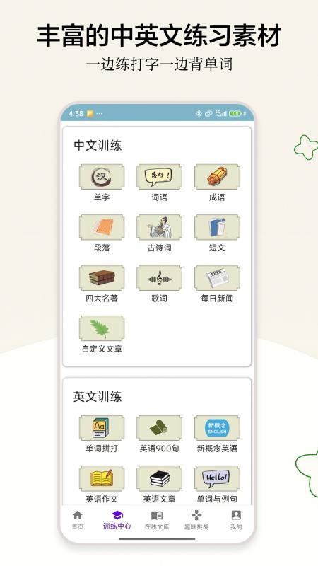 1、练字的内容非常丰富,包括成语、短文、段落、小说等等,从易到难,帮助用户轻松提升打字的速度,降低打字的错字率;