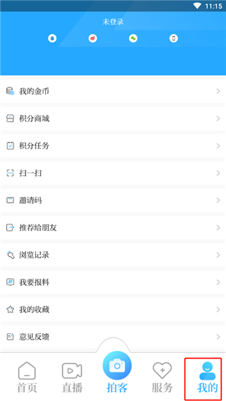 3、提供丰富的个人中心功能列表,其中有我的金币、积分商城、浏览记录和我要爆料等功能。