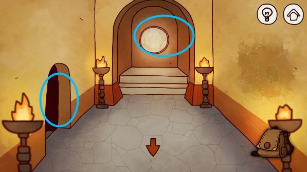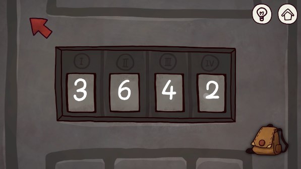 23、使用火柴点击蜡烛,照亮周围。点击大门,输入密码。密码:876,墙壁上的数字对应的是图案一共有几个三角形