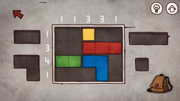 20、将狮子雕像放入地面的凹槽中,可以打开暗道,在右侧放入红色方块。周围数字代表在这行/列 当中有几个方块。