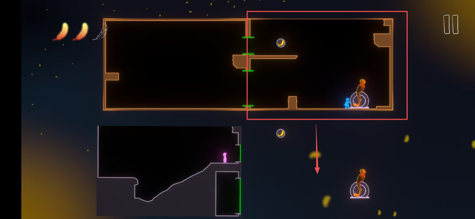 3、进入第一关你将首先操控小男孩,在闯关途中你需要收集羽毛并来到凤凰位置切换为小女孩视角