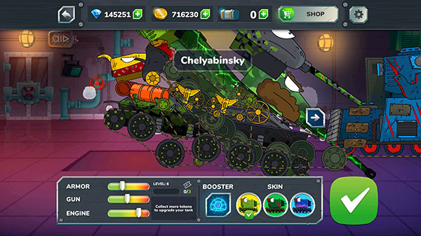 2、给自己的坦克安装各种厉害的防护装甲吧,防御力高才能承受更多的伤害。