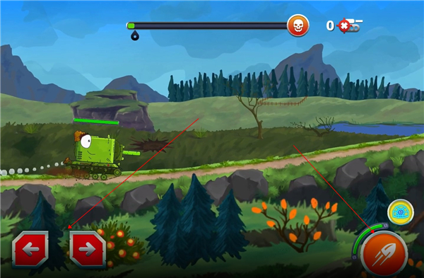 4、进入游戏后,玩家可以通过左边的按钮来控制坦克前进或者后退,右边的按钮控制坦克发射弹药进行攻击。