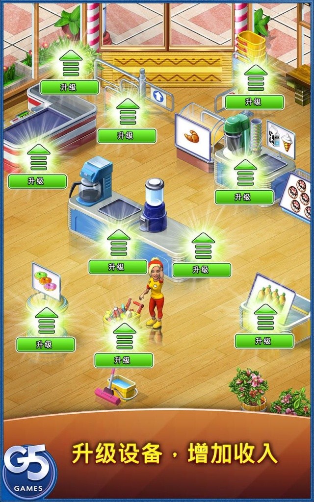 1、我们做了一些小的改进。在这个令人兴奋的时间管理游戏的更新中,与尼基和她的朋友一起经营一家连锁杂货店!