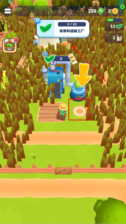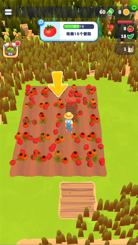 1、进入农场主快开荒中文版游戏后,拖动屏幕解开移动角色,靠近树木即可采集资源。