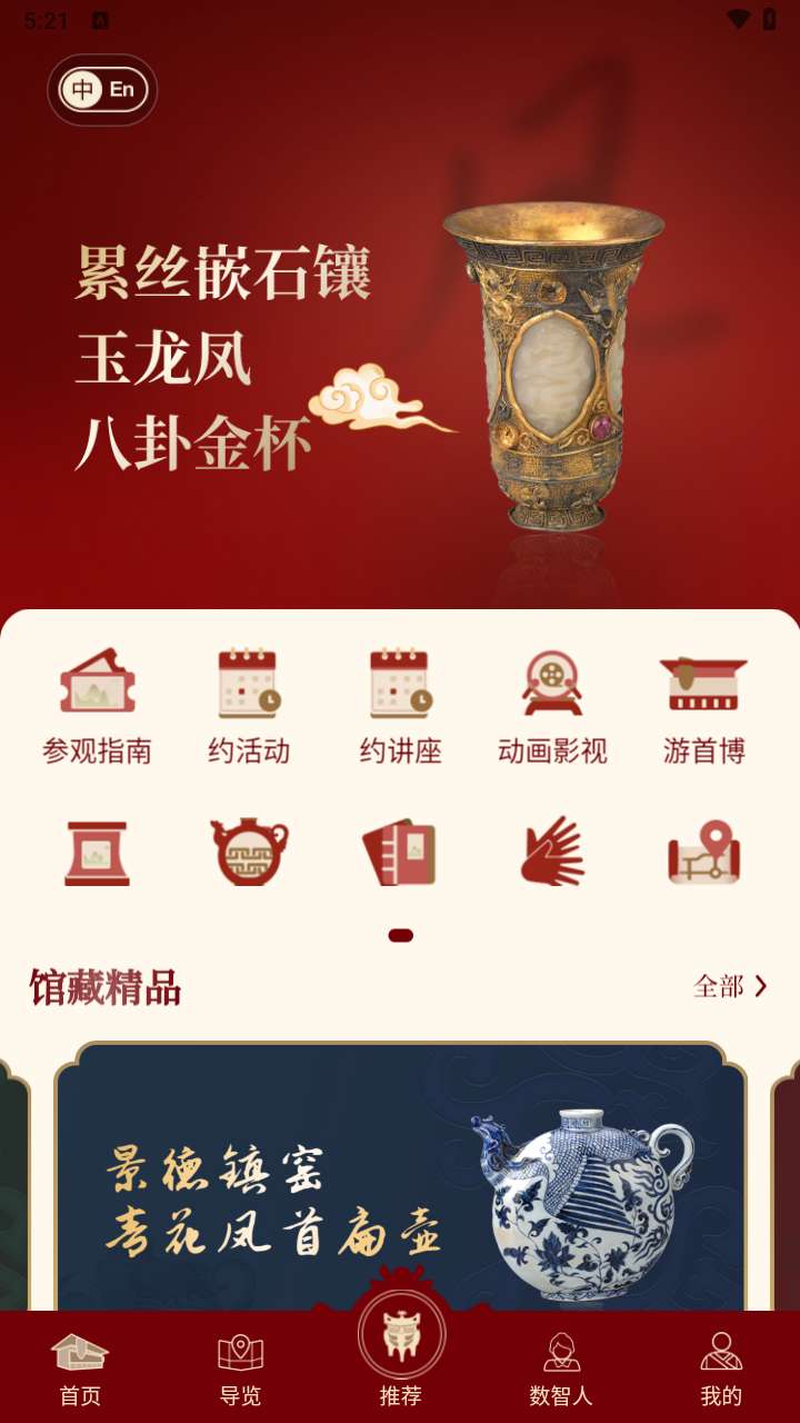 1、用户打开软件后就可以进入到首页的百宝阁中,点击进去就可开启文物线上展览