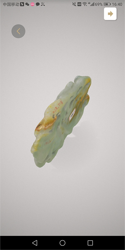 5、点击文物的缩略图后,在打开的文物详情图中,用户可以通过上下左右滑动页面来对文物进行多角度地观看