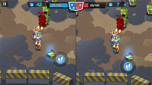 《双人大作战》是一款超级刺激好玩有趣的双人联机的动作射击游戏。游戏中,玩家们将化身成为一名超级特工,可以选择自己喜欢的角色进行战斗。游戏操作轻松好上手,玩法十分简单,玩家们需要不断地点击屏幕右方的按钮,将敌人狠狠地拽向自己,然后与队友一起将敌方僵尸们全部歼灭。即便过程中队友阵亡,玩家们也可以进行施救,只要有一个人活着,游戏就可以进行下去。游戏中提供许多武器,玩家们可以随意搭配使用。