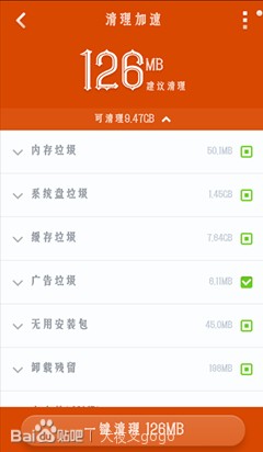 二、点击一键清理按钮,会清理掉扫描出的126MB垃圾,点开下拉菜单会发现,对于提示为“谨慎清理”的内容,不是默认勾选清理的,如果有需求,可以手动勾选,进行清理,此部分内容建议谨慎操作。