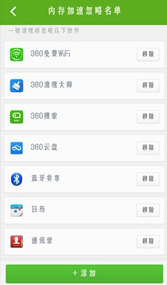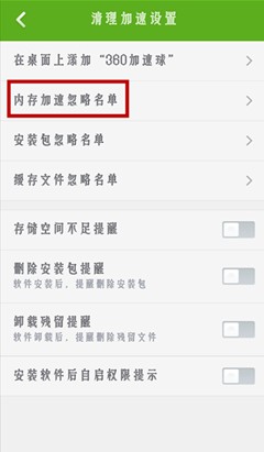 三、点击右上角的三个点,对清理加速功能进行设置,点击内存加速忽略名单,可以添加一键清理时忽略的软件。