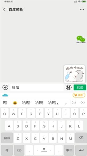 2、唤出键盘,输入“哈哈”。