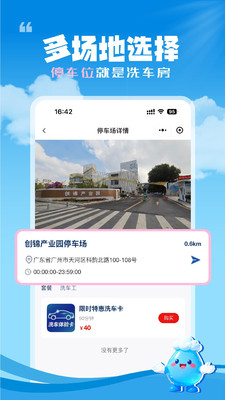 根据用户的定位推荐了附近的所有停车场,从而能够找到最近停车场洗车;