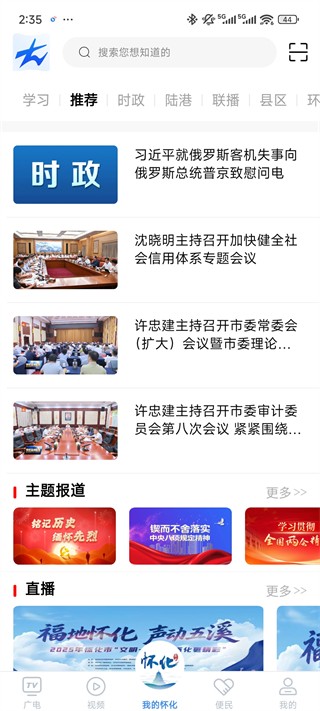 1、打开我的怀化App,广电板块,提供本地广播电视节目