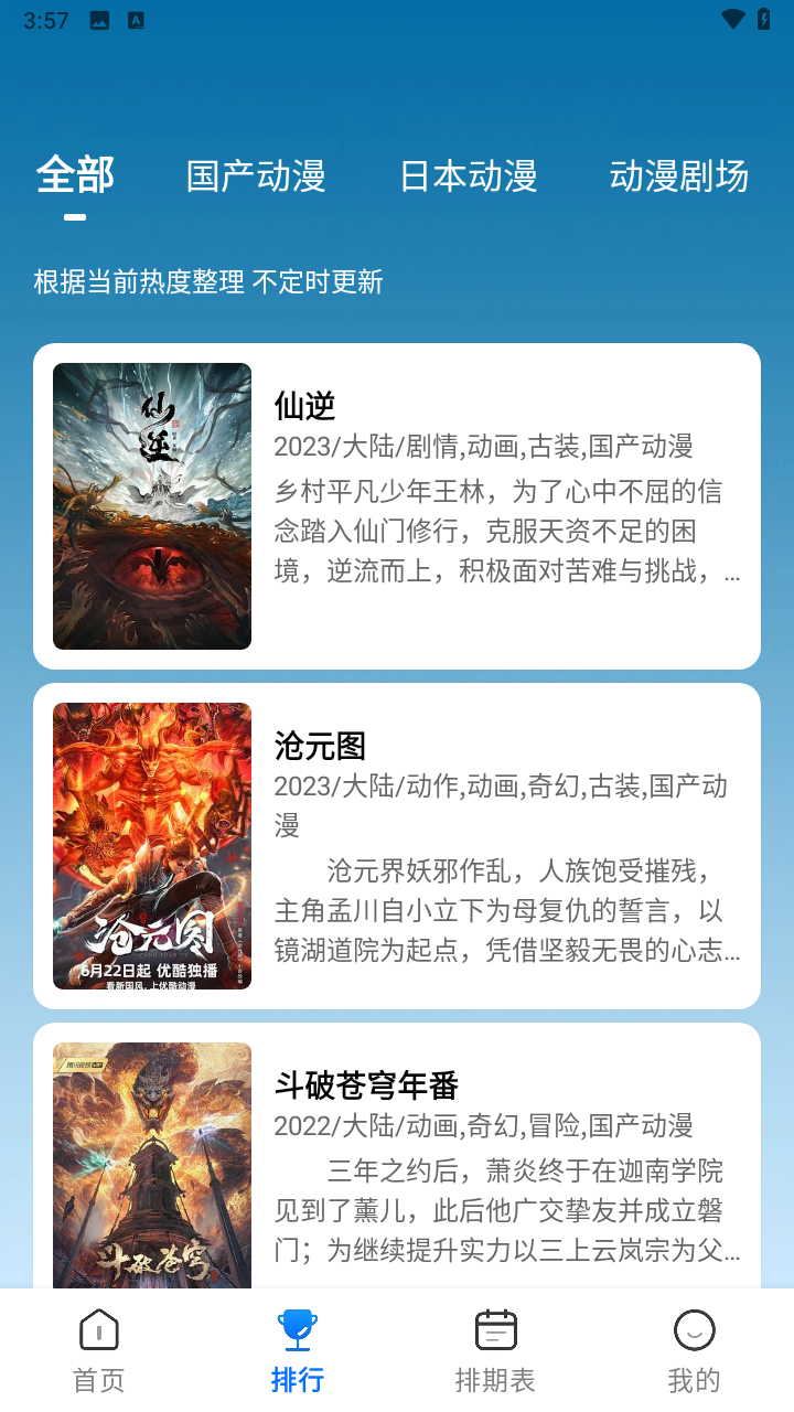 软件会根据当前热度整理出一份动漫排行榜单
