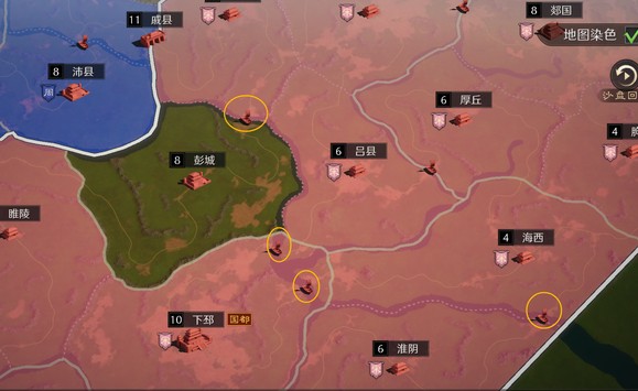 再说说徐州的州内布局,黄河古道流经徐州,因此徐州的地缘中水系也更为发达,在初期的分割战中,四座码头的归属尤为重要,一旦被我拿下,虽然我占据了徐州的少部分领土,但北方的敌人将被我圈禁在半岛之滨,如果没有外州来救,将再无出头之日,徐州也是在前期分割战中,能将对手分割的最彻底的出生州。当然弊端在于所管辖的城市较少,盟内发育缓慢,这就是为什么我前面提到徐州要主动出击,以战养战的原因。徐州开局优先级:码头>彭城(守码头的纵深)>淮阴(守码头的纵深),徐州州府卫星城的作用较小,因为一旦码头攻防战胜利,敌军就不具备攻击州府的条件了。