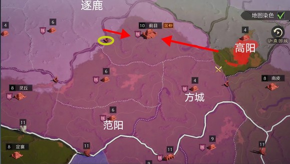关于幽州州内布局,其州府蓟县仅于西侧的逐鹿与东侧的高阳相接壤,高阳西南的方城虽不接壤(去州府需要经过一小段高阳境内),但其接壤的资源州关口成为了其成为重中之重的关键,另外,如果州内爆发州府争夺战,逐鹿东南的码头也是战役的关键据点。幽州的特点在于,资源州关口西侧唐县与东侧易城的关口距离较近,很容易被其中一个同盟占领,并迫使拿了北方州府的敌盟妥协从而达到其自身战略目的。因此在作者看来,幽州开局的城市优先级:方城>高阳=逐鹿>范阳。