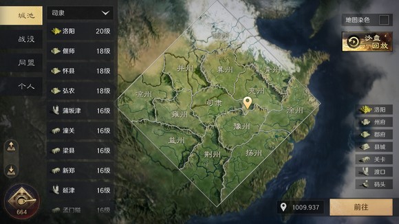 城池功能可以查看各州城池、码头和关口的位置、等级和占领情况。