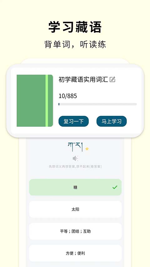 藏汉翻译通是一款专门给学习藏语的用户打造的软件,软件能快速对藏文进行翻译,一键拍照识别内容快捷翻译出结果,还有离线词汇的内容,支持更换图片背景保存,线上一键就可以快速的进行翻译,还能在线查看翻译结果,有离线翻译功能,即使语音包后没有互联网连接,也可以直接使用,支持多种方言的识别和翻译,涵盖多个常见场景,满足用户的使用需求。